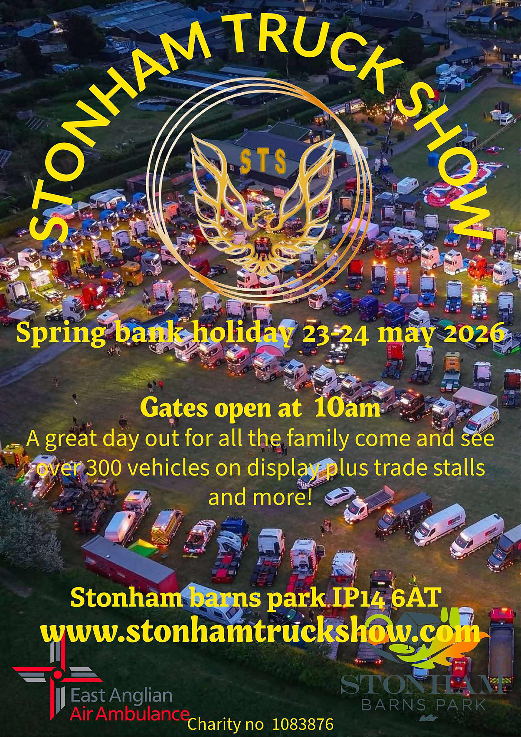 Stonham Truck Show is a commercial vehicle show open to all types and makes of commercial vehicles. The show is run by drivers for drivers with the sole aim of raising funds for the East Anglian Air Ambulance charity. To date they have raised just over £42,000 for the charity.